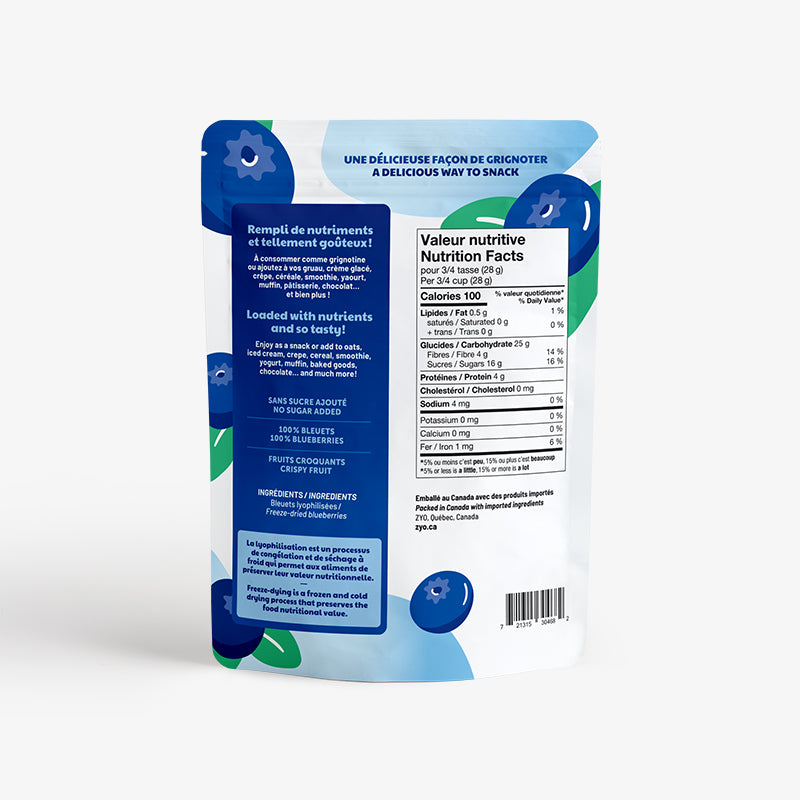 At Zyo, we offer you high quality freeze-dried blueberries. No additives, artificial colours or flavours, just fruit!