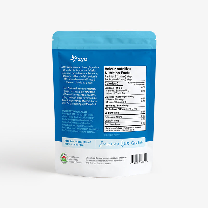 Here is a mix exclusive to Zyo made with the greatest care. A delicious lemony combination delicately enhanced with notes of spices. This tonic will invigorate your taste buds with its citrus taste. Enjoy this infusion hot or on ice for a refreshing drink.