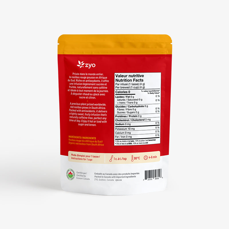 Ingrédients : Rooibos rouge biologique d’Afrique du Sud